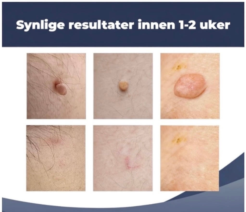 Vår Hudflikfjerner er en enkel og naturlig metode som hjelper deg med å fjerne godartede hudforandringer hjemme. Ved å blokkere blodtilførselen til hudforandringen tørker den ut og faller av innen 1–2 uker. Egnet for hals, armer, rygg, ben og andre områder.